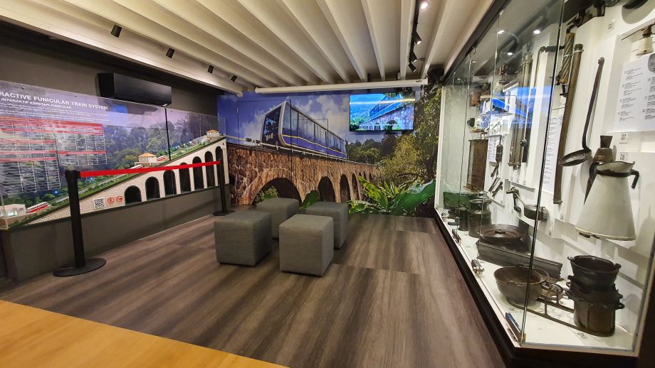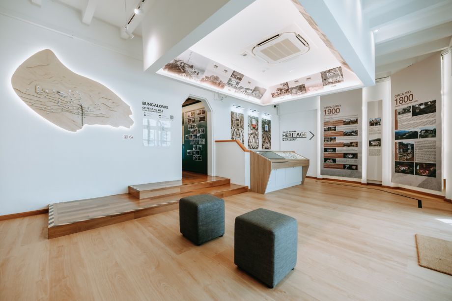 Galeri ini terdiri daripada 5 segmen utama, setiap bahagian mempunyai ciri yang unik mengenai Bukit Bendera. Perjalanan yang tidak dapat dilupakan dan menarik bermula dari saat pengunjung menjejakkan kaki ke dalam bangunan melalui Terowong Masa yang akan membawa mereka kembali ke masa lalu. Seterusnya pengunjung dapat mengembara di dalam hutan tertutup di ruangan Biodiversiti diikuti dengan penerokaan beberapa seni bina warisan yang memikat di atas bukit di ruangan Warisan. Perjalanan diteruskan ke galeri Funikular di mana pengunjung dibongkarkan dengan kejayaan kejuruteraan yang hebat dalam membina funikular di atas bukit seabad yang lalu. Akhir sekali, pengunjung boleh menghidupkan semula kehidupan yang meriah di atas bukit semasa mereka menuju/bersiar-siar ke galeri Kebudayaan. Untuk melengkapkan pengalaman, pengunjung boleh membeli-belah cenderamata untuk dibawa pulang sebagai kenang-kenangan di Bukit Bendera.